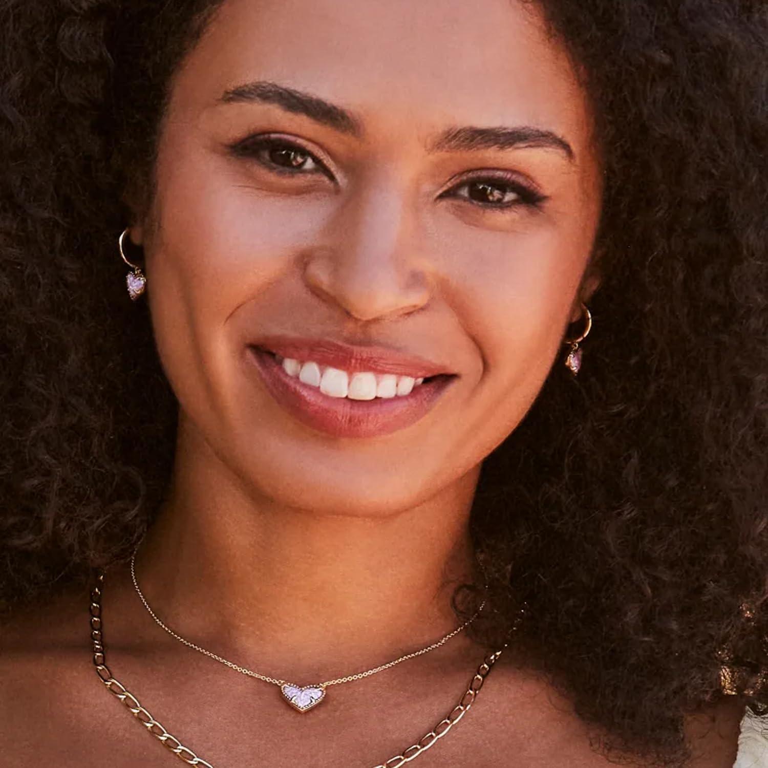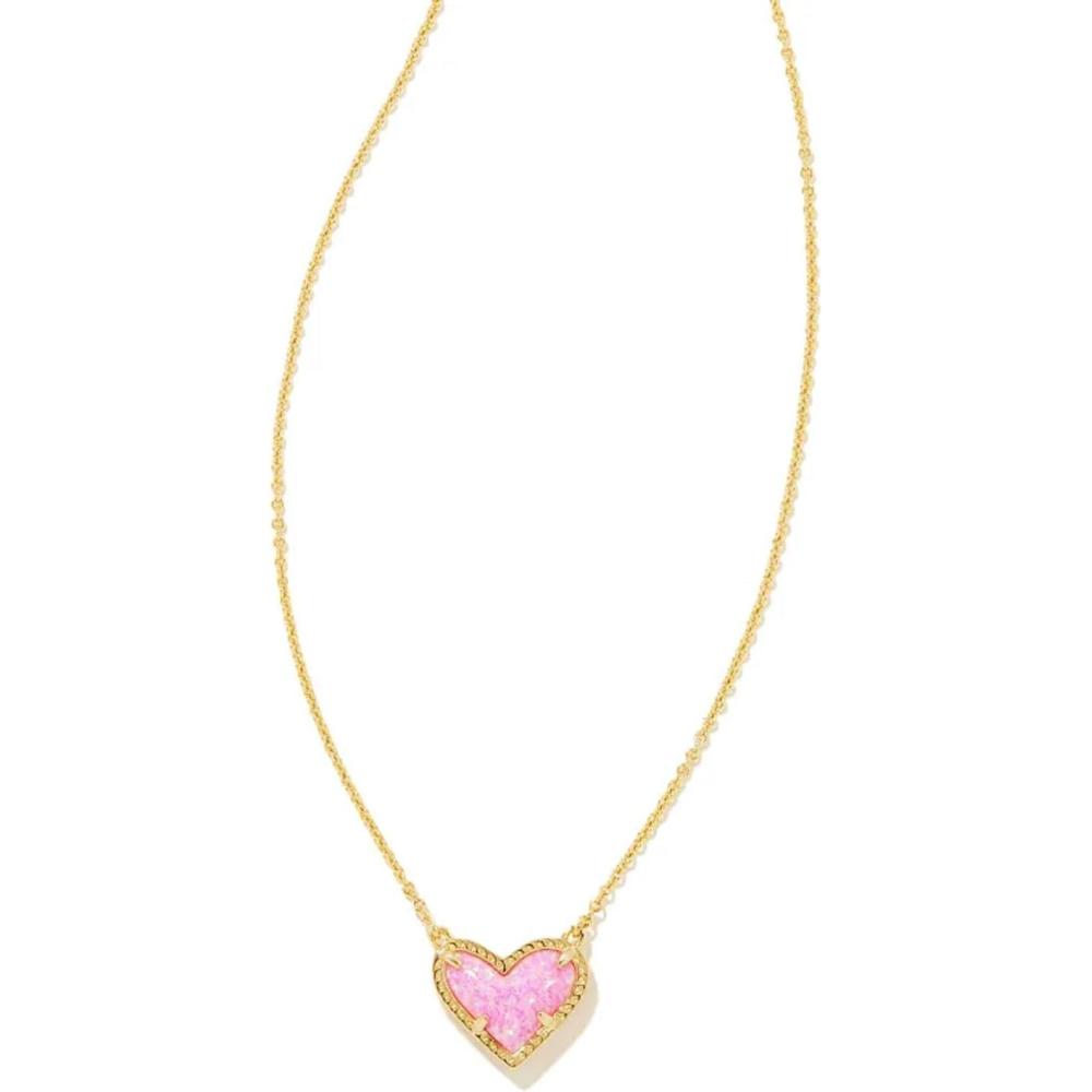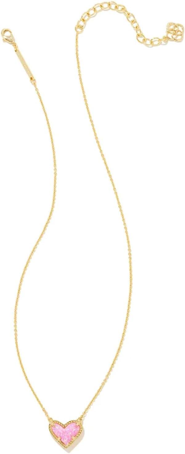 Kendra Scott Ari Heart Adjustable Length Pendant Necklace for Women, Fashion Jewelry(GOLD - BUBBLEGUM PINK OPAL)