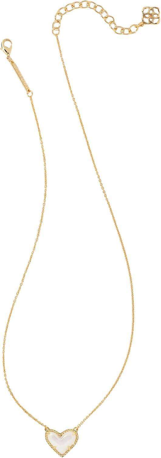 Kendra Scott Ari Heart Adjustable Length Pendant Necklace for Women, Fashion Jewelry(Gold Iridescent Frosted Glass)