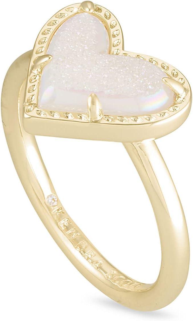Kendra Scott Ari Heart Band Ring, Fashion Jewelry for Women(GOLD – IRIDESCENT DRUSY)