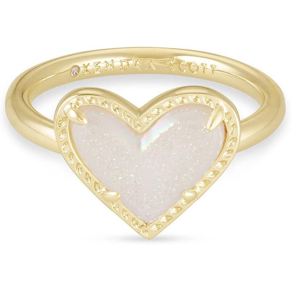 Kendra Scott Ari Heart Band Ring, Fashion Jewelry for Women(GOLD - IRIDESCENT DRUSY)