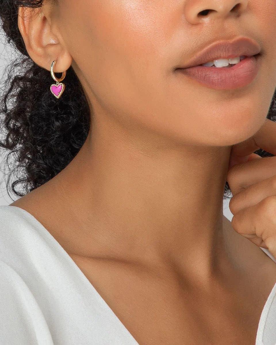 Kendra Scott Ari Heart Huggie Earrings for Women, Fashion Jewelry(GOLD – ROSE QUARTZ)