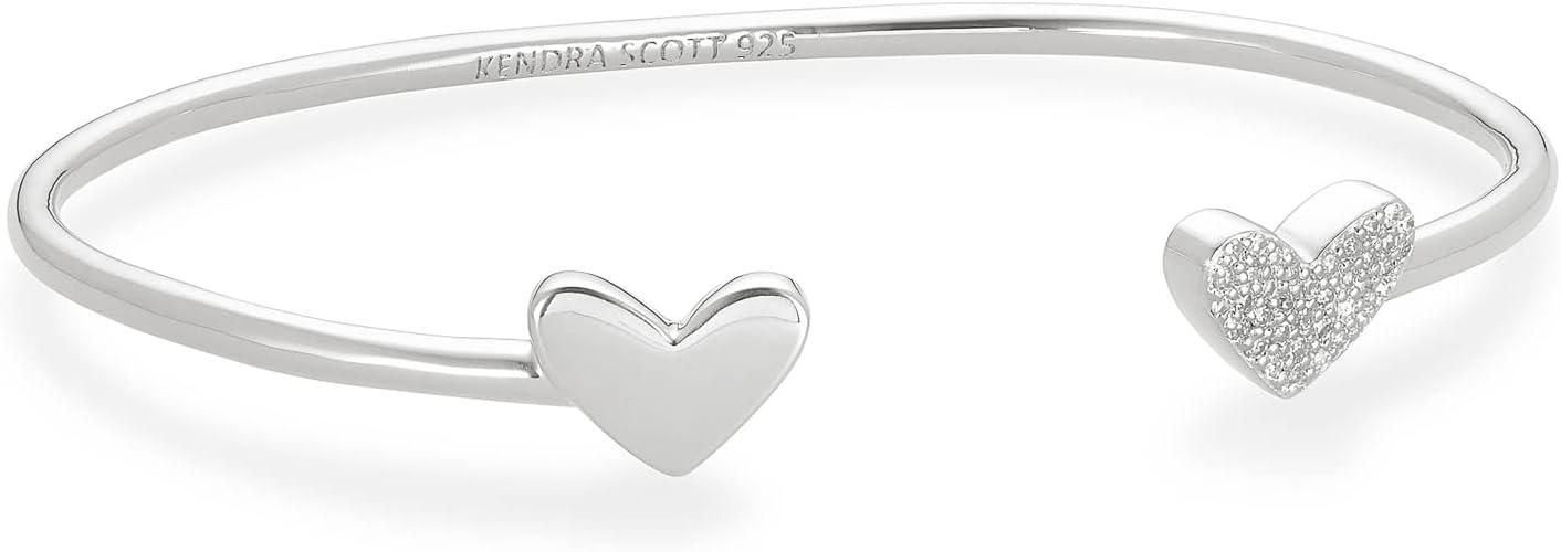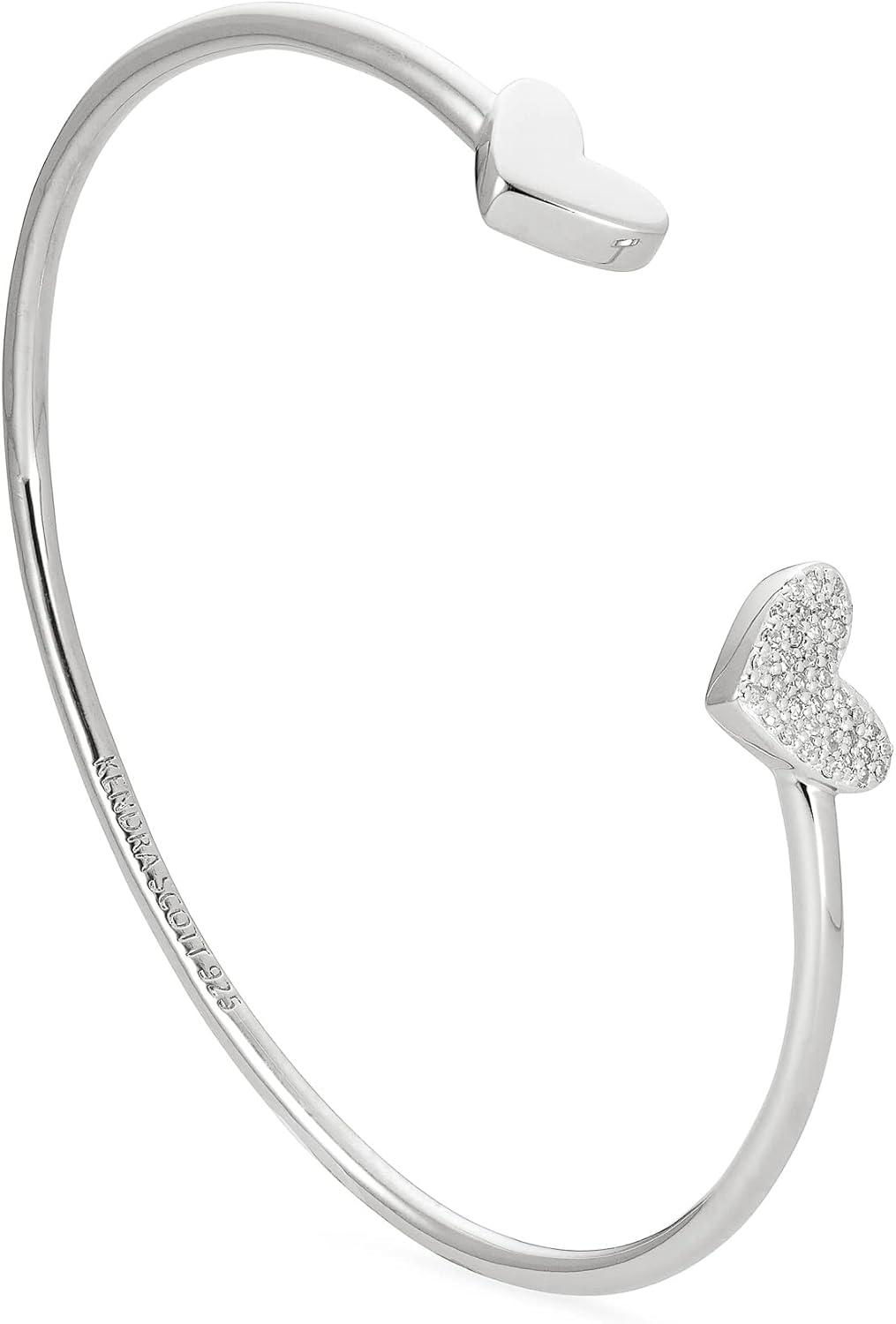 Kendra Scott Ari Heart Sterling Silver Cuff Bracelet in White Diamond, Fine Jewelry for Women
