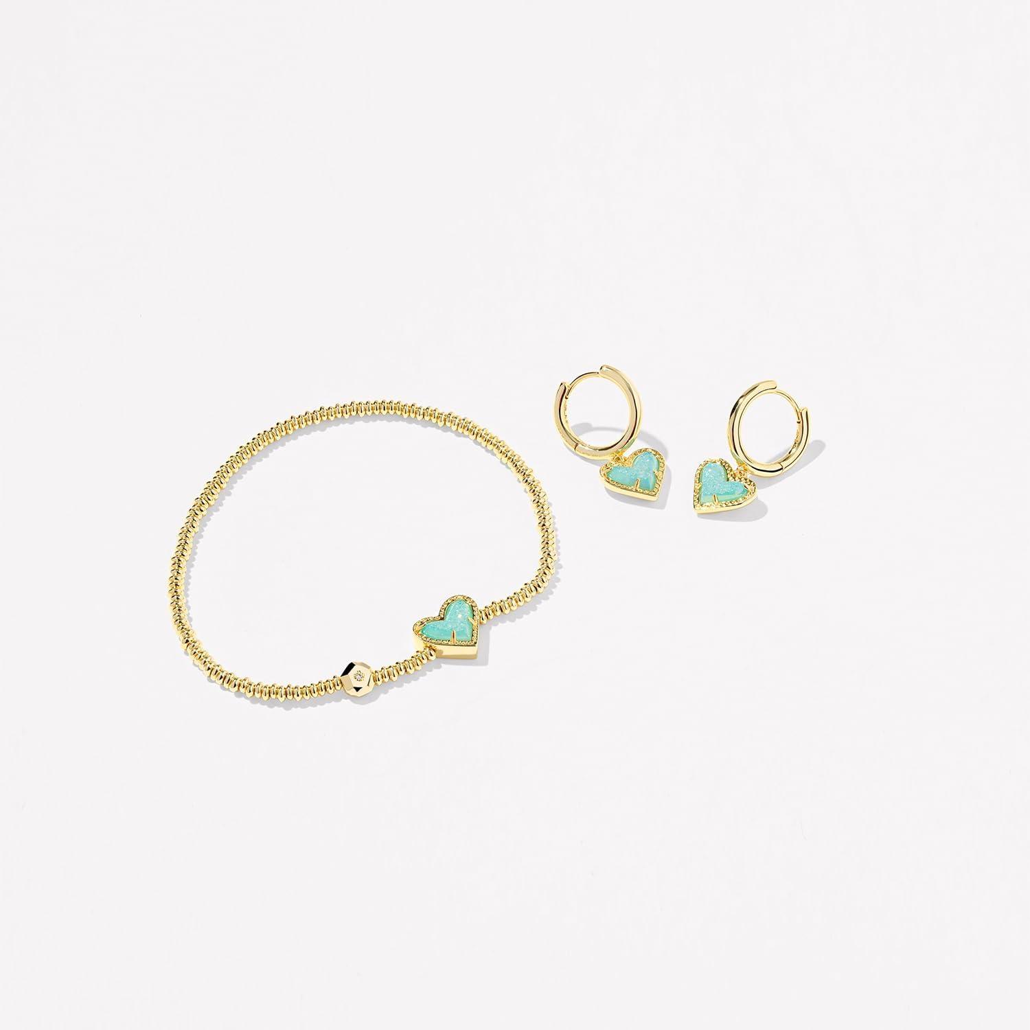 Kendra Scott Ari Heart Stretch Bracelet, Fashion Jewelry for Women(GOLD - BRIGHT AQUA DRUSY)