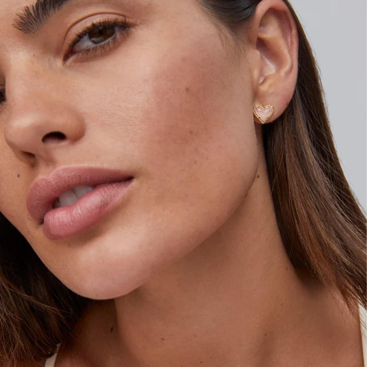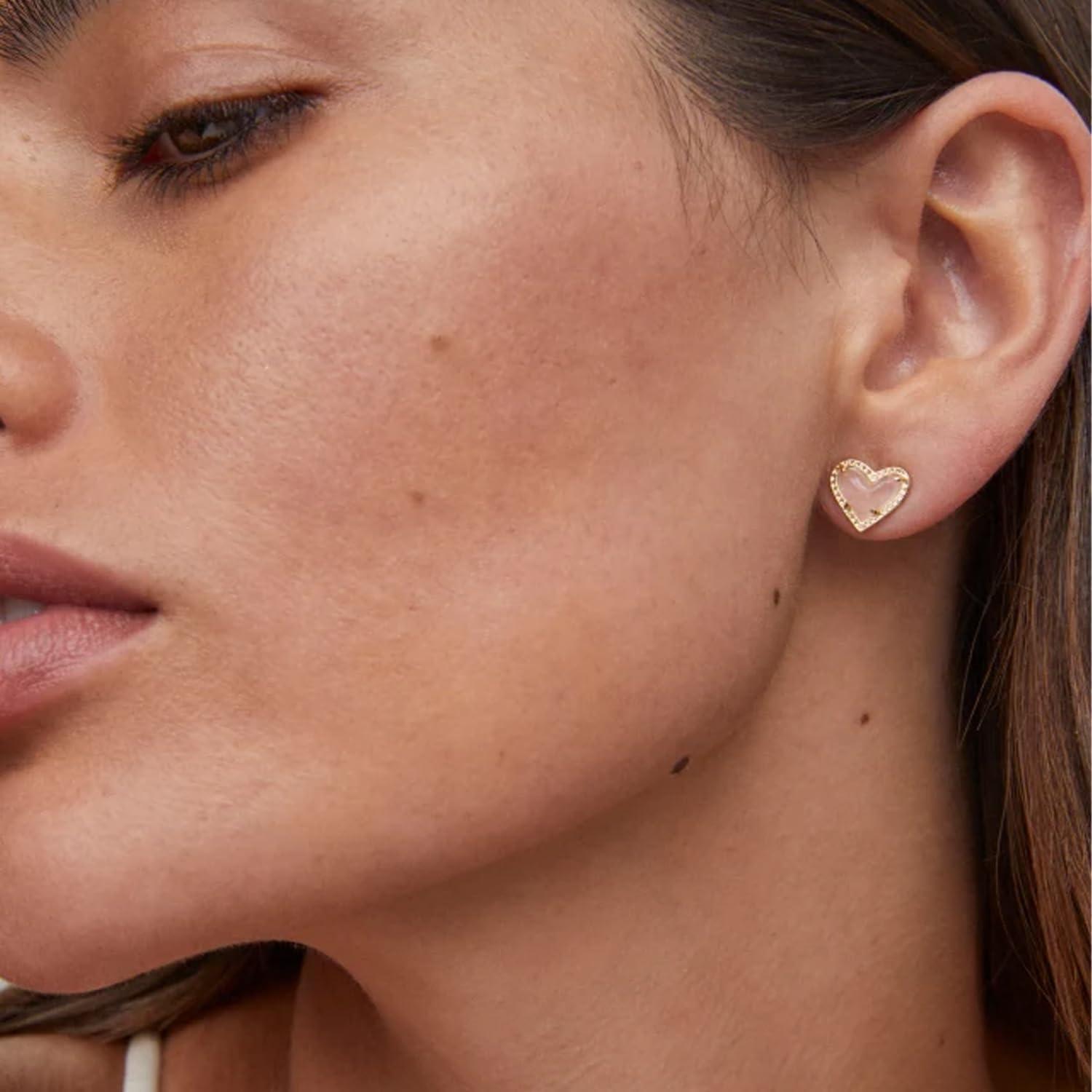 Kendra Scott Ari Heart Stud Earrings for Women, Fashion Jewelry(GOLD – ROSE QUARTZ)