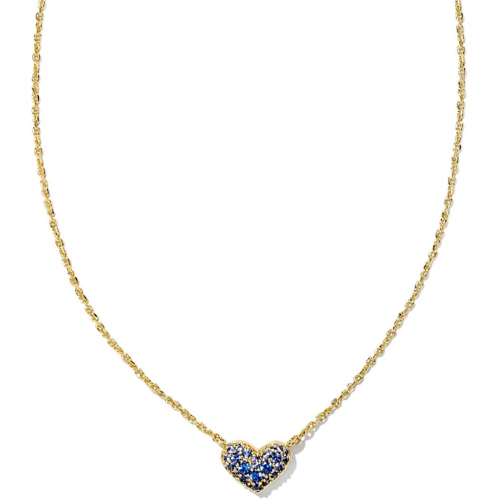 Kendra Scott Ari Pave Crystal Heart Necklace, Fashion Jewelry For Women(GOLD - SAPPHIRE VIVID BLUE)
