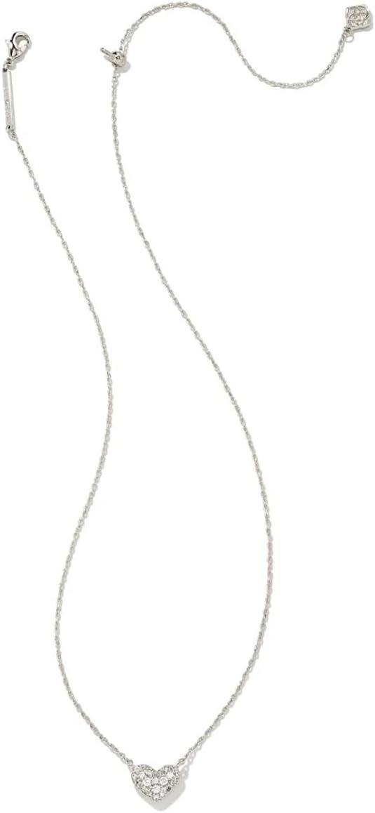 Kendra Scott Ari Pave Crystal Heart Necklace, Fashion Jewelry For Women(RHODIUM METAL - WHITE CUBIC ZIRCONIA)