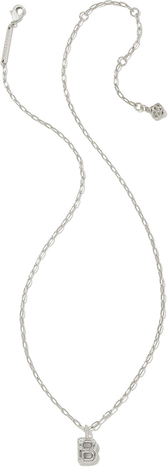 Kendra Scott Crystal Letter Short Pendant Necklace, Fashion Jewelry for Women(Letter B (RHODIUM-PLATED))