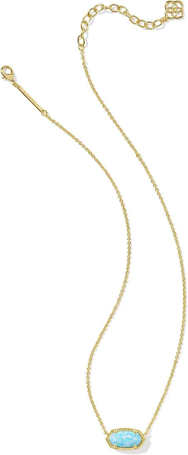 Kendra Scott Elisa Oval Pendant Necklace in Red White and Blue Star Illusion and Gold(GOLD – LIGHT TEAL KYOCERA OPAL)