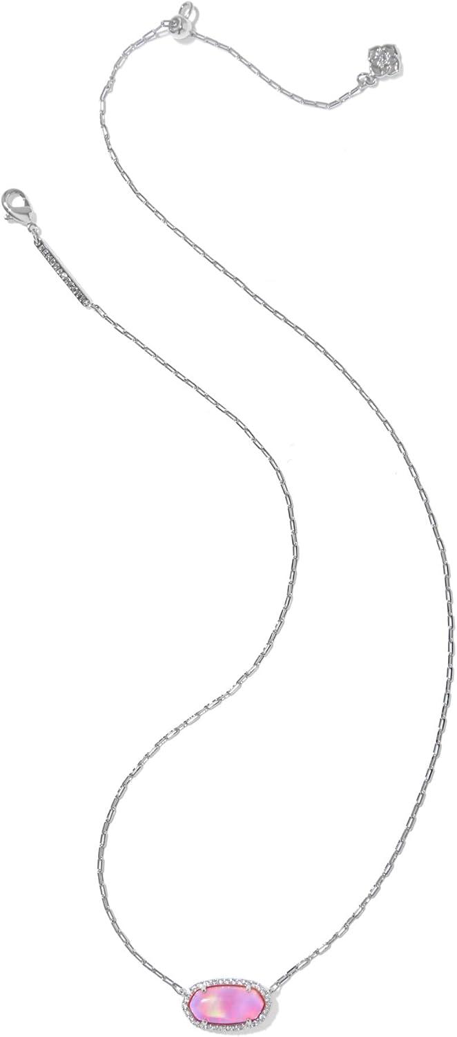 Kendra Scott Elisa Pave Frame Short Pendant Necklace, Fashion Jewelry for Women(RHODIUM - PINK OPALESCENT RESIN)