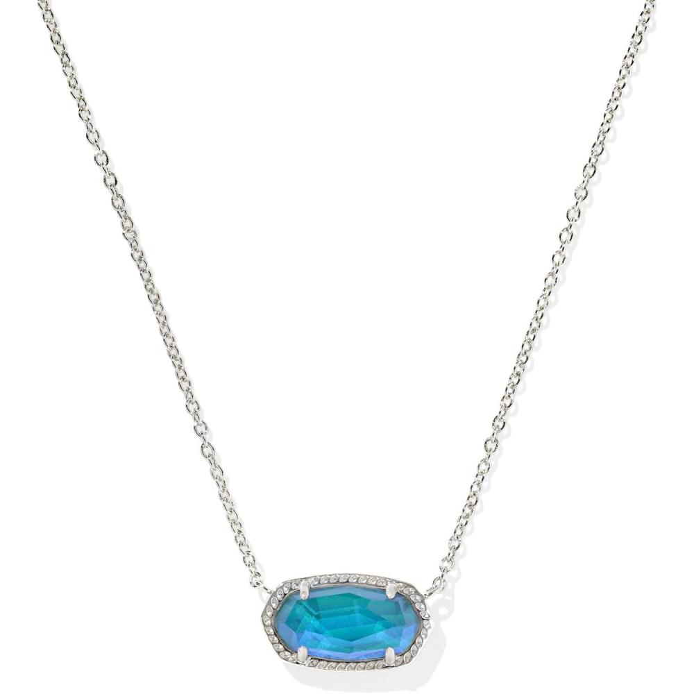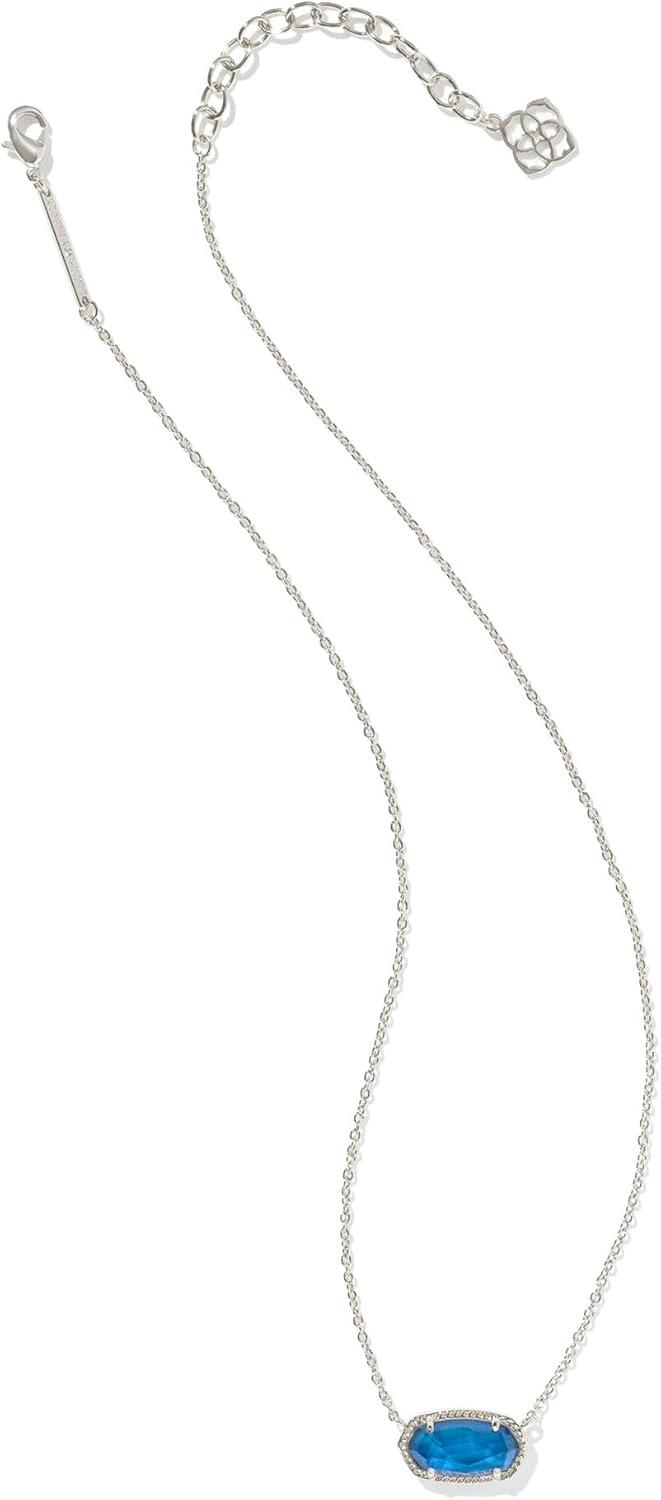 Kendra Scott Elisa Pendant Necklace for Women, Fashion Jewelry, 14k Gold-Plated(RHODIUM – LONDON BLUE)