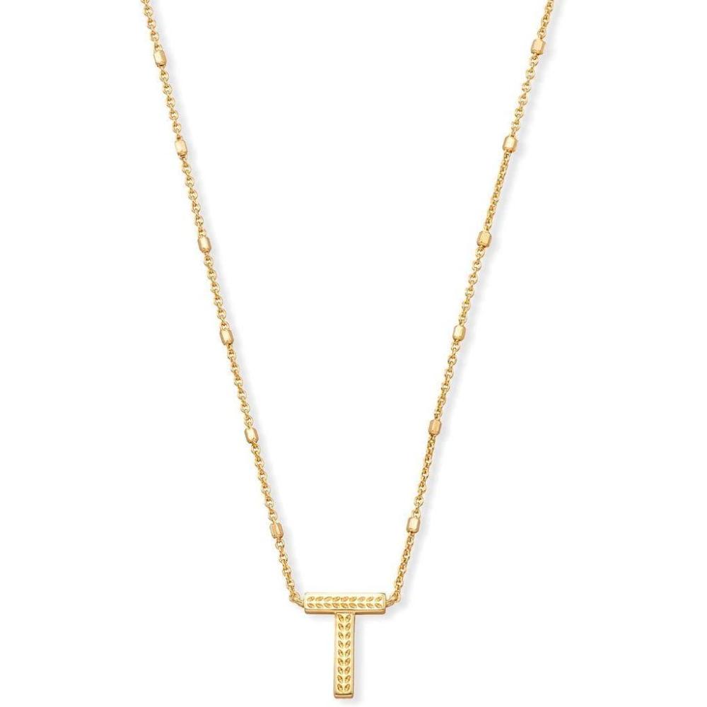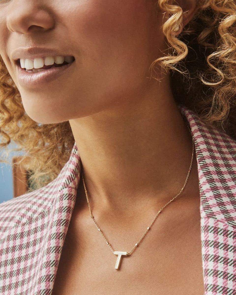 Kendra Scott Letters A-Z Pendant Necklace for Women, Fashion Jewelry, 14k Gold-Plated Brass(Letter T)