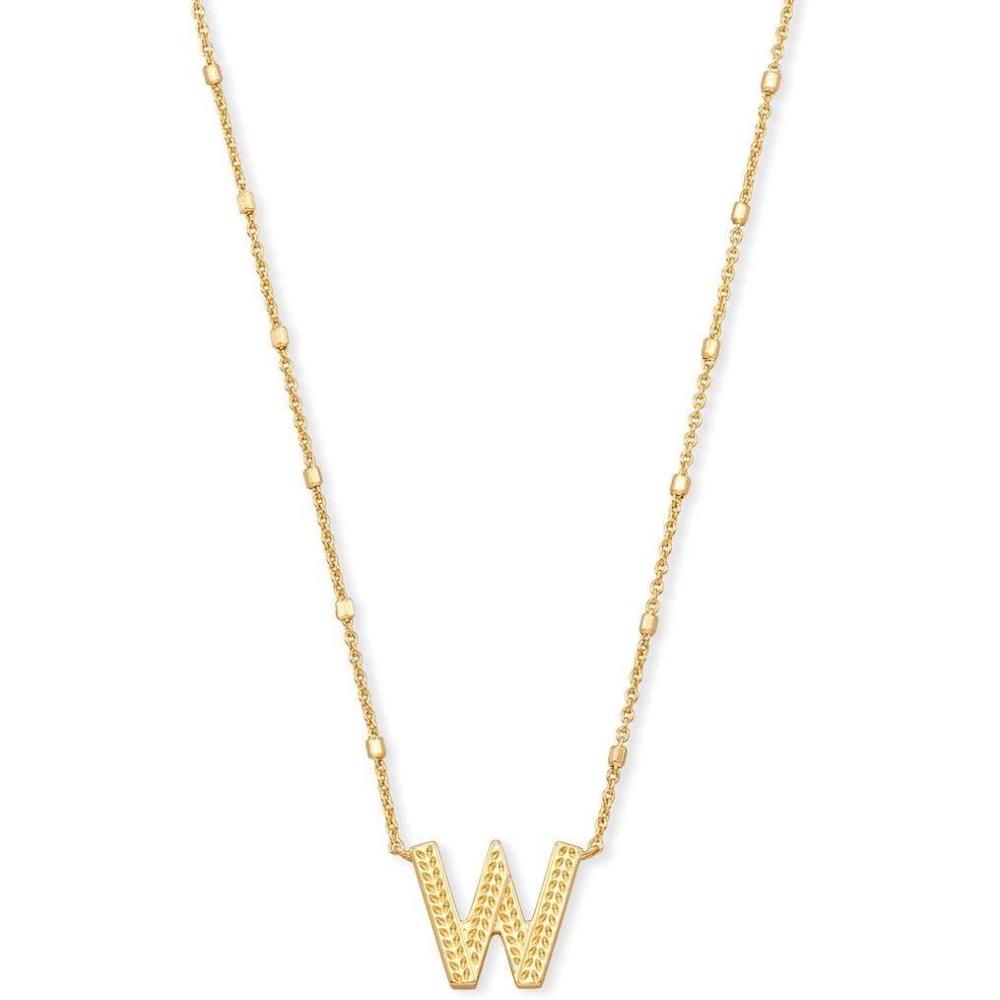 Kendra Scott Letters A-Z Pendant Necklace for Women, Fashion Jewelry, 14k Gold-Plated Brass(Letter W)