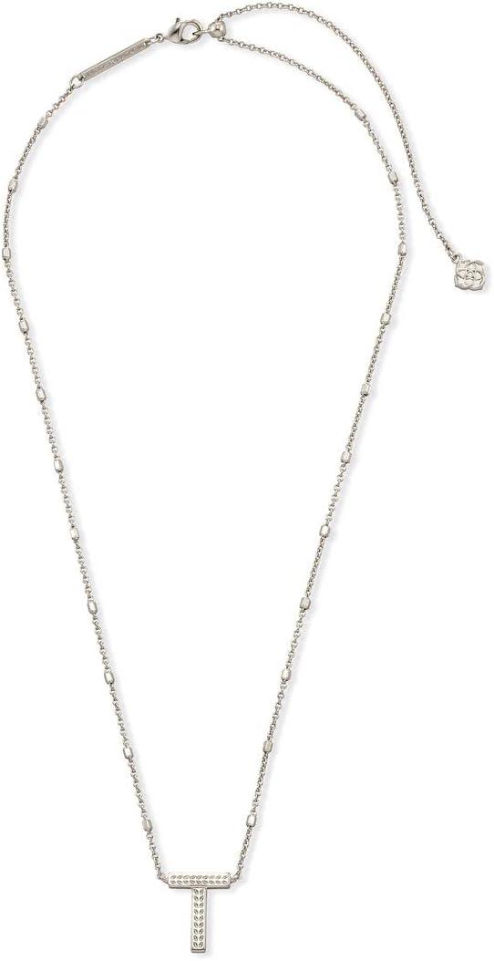 Kendra Scott Letters A-Z Pendant Necklace for Women, Fashion Jewelry, Rhodium-Plated Brass(Letter T)