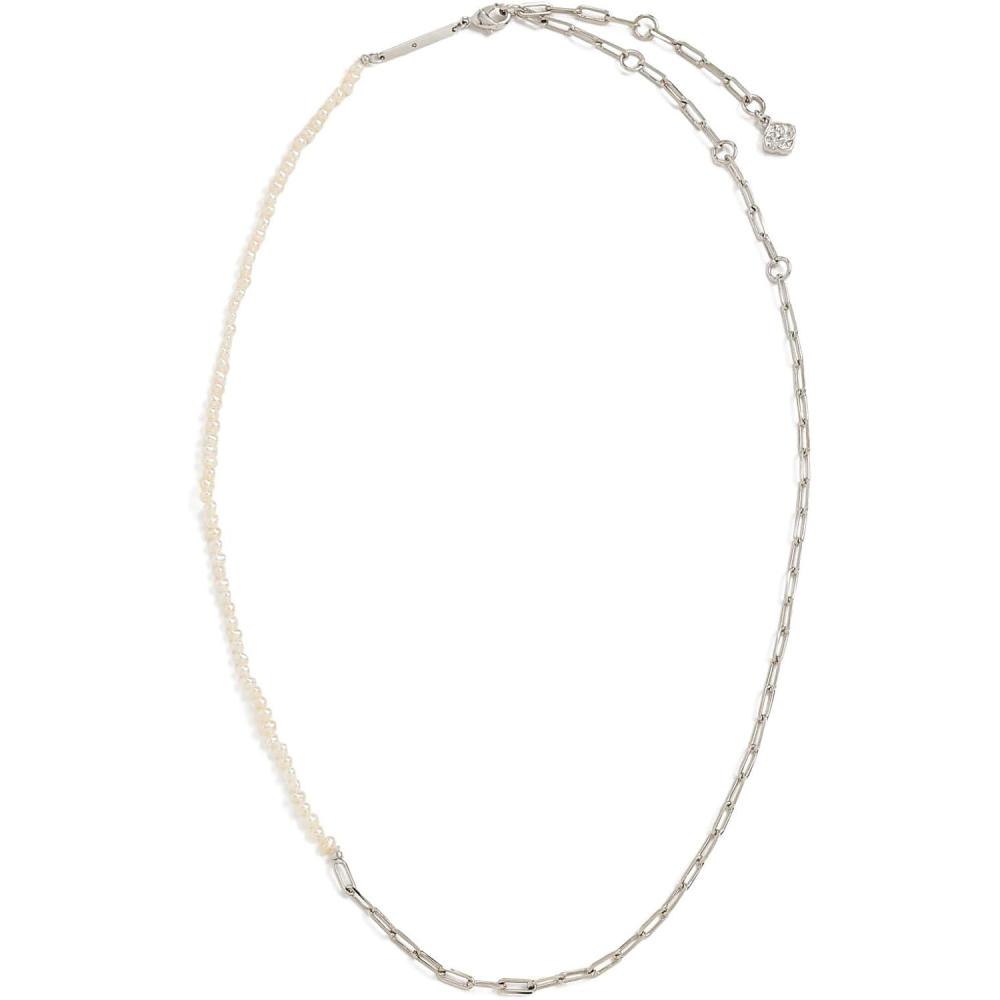 Kendra Scott Markie Half Chain Necklace, Fashion Jewelry for Women(RHODIUM-FRESHWATER CULTURED PEARL)