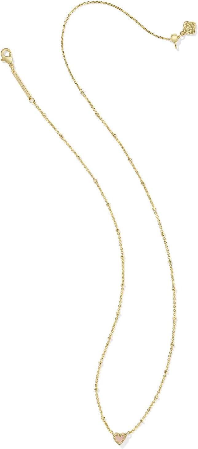 Kendra Scott Mini Ari Heart Satellite Necklace, Fashion Jewelry for Women(GOLD - ROSE QUARTZ)